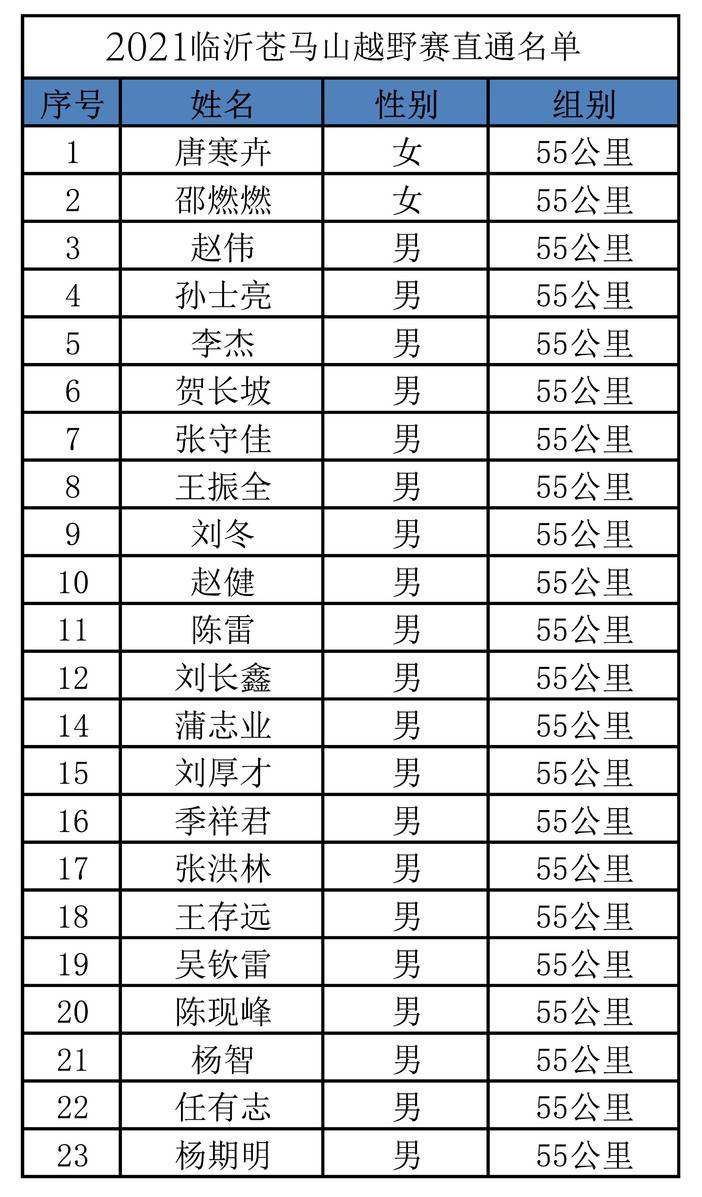 直通名单丨2021临沂苍马山越野赛
