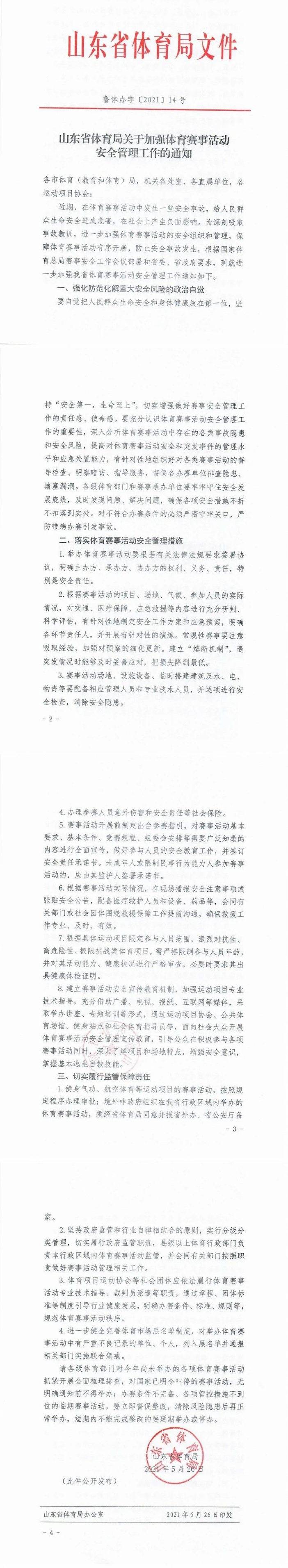 山东省体育局关于加强体育赛事活动 安全管理工作的通知